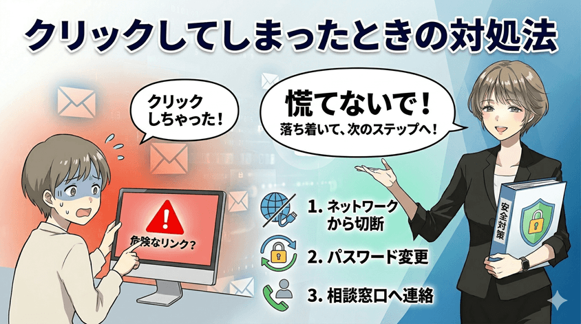- 万が一クリックしてしまったときの対処法