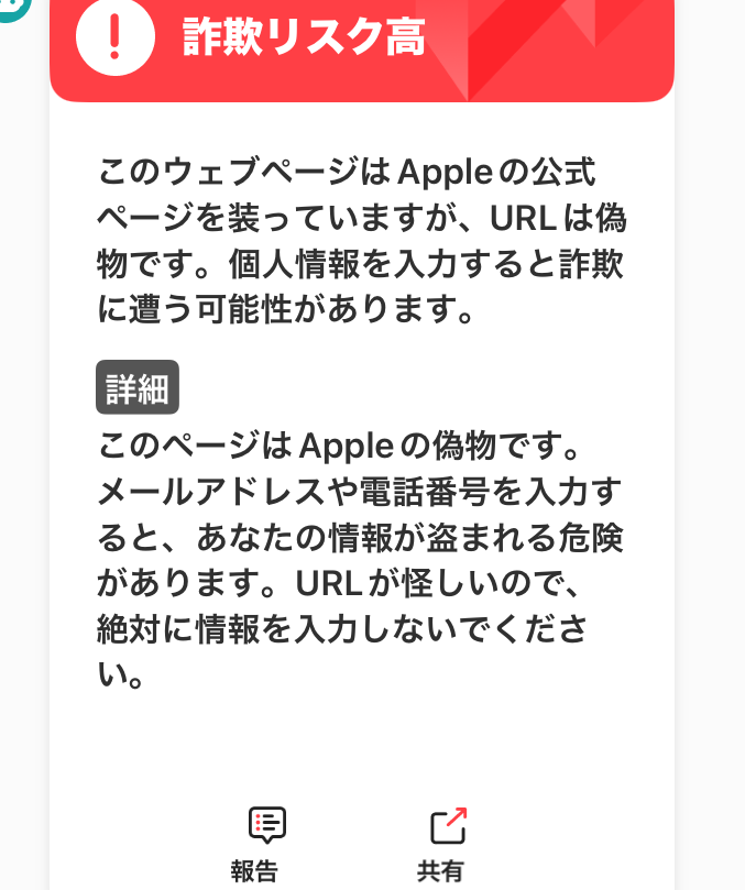詐欺サイトを正しくチェックしてくれた